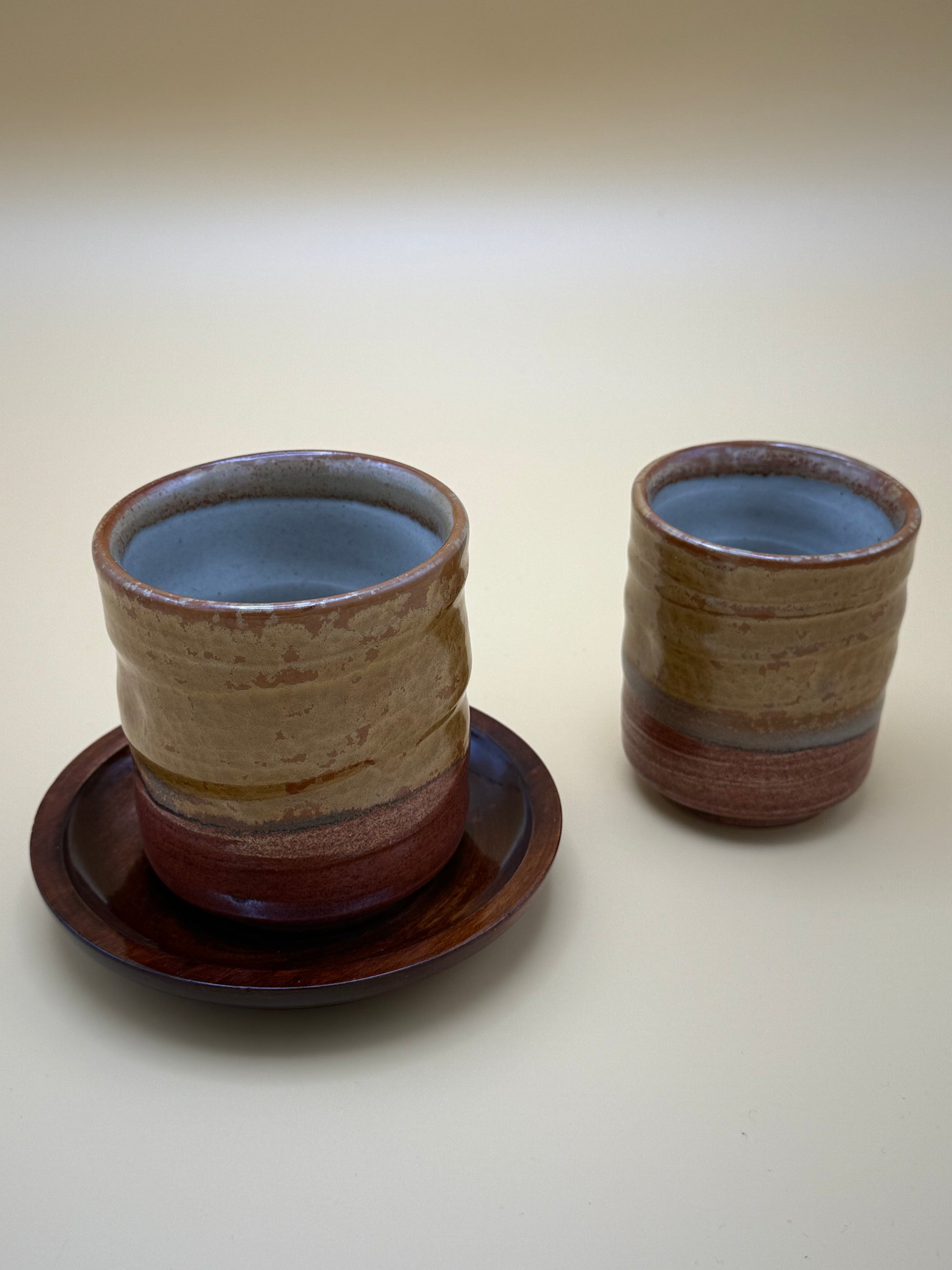 A charming set of handmade vintage teacups designed for two (Meoto yunomi), each piece carrying the warmth and character of its era. Perfectly sized for enjoying tea together, these cups feature delicate patterns and subtle details that celebrate traditional craftsmanship. Ideal for collectors and tea lovers this set invites quiet moments of connection and appreciation for timeless design. Can also be used for coffee.