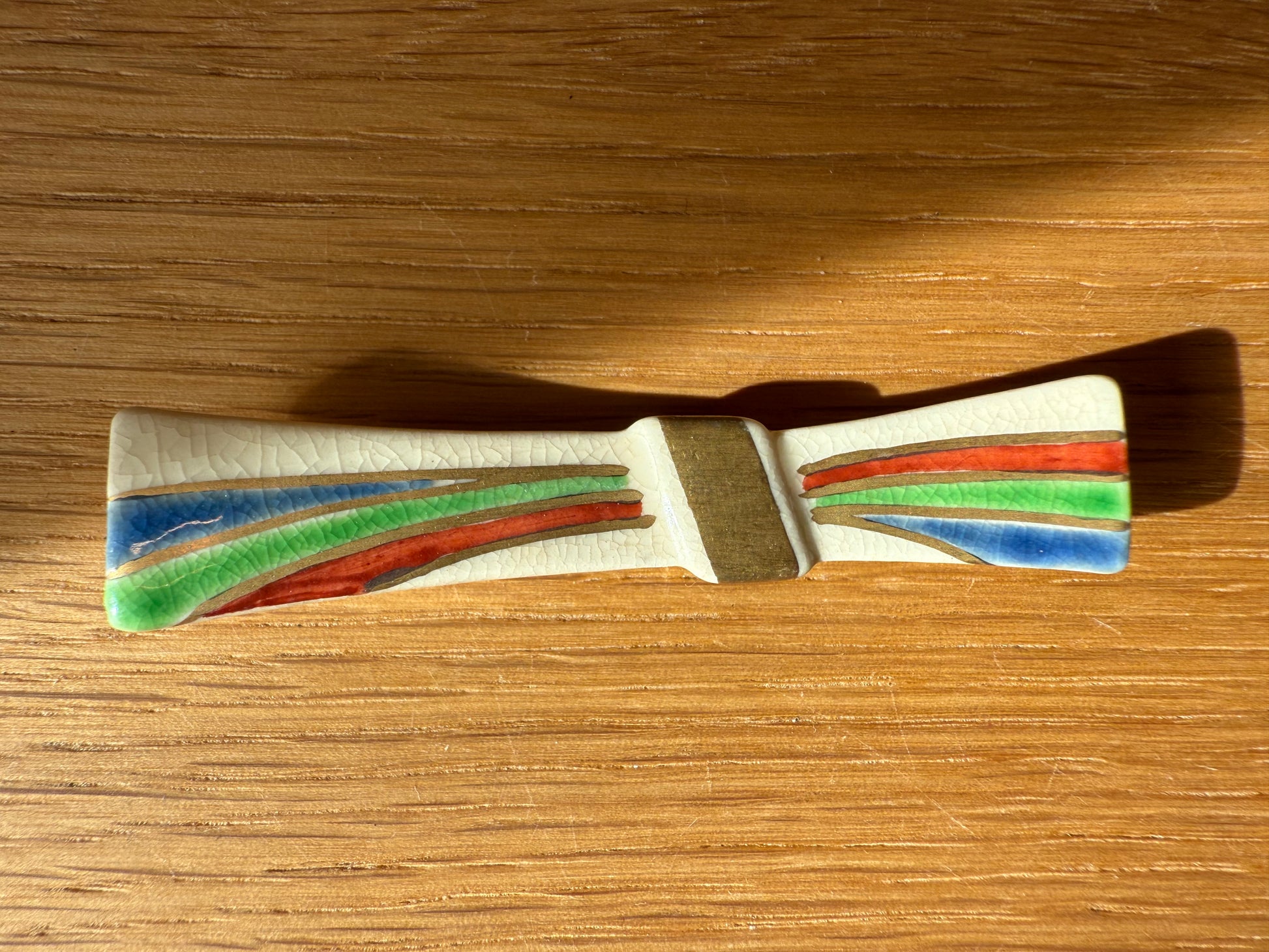 A charming set of five Kyomizuyaki chopstick holders (Hashioke), each handcrafted with care in Kyoto’s traditional pottery style. These elegant holders are perfect for elevating your dining experience, keeping your chopsticks clean while adding a touch of artistry to the table. Each piece is unique, with subtle variations in glaze and form that reflect the beauty of handmade craftsmanship.